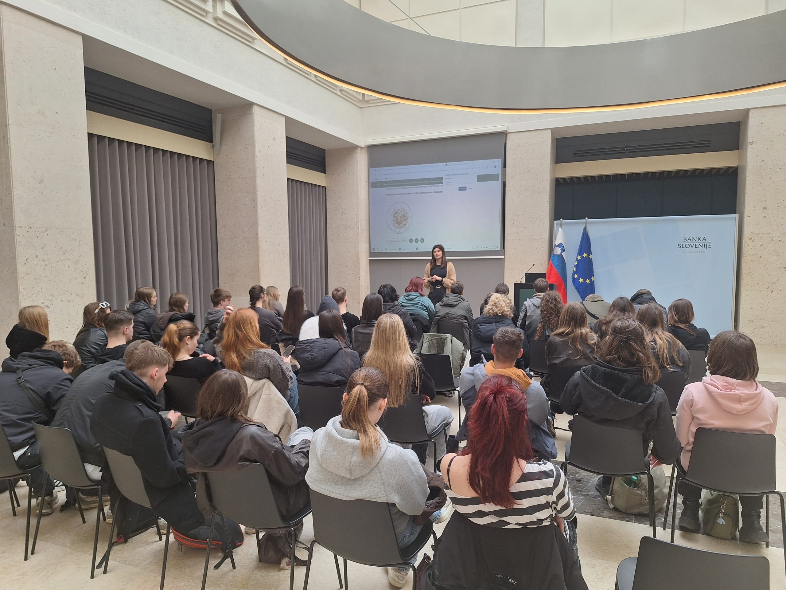 V četrtek, 2. 4. 2026, smo 2. CV in 3. FT v okviru aktivnega državljanstva obiskali Hišo Evropske unije in Muzej Banke Slovenije. Poučili smo se o EU, se preizkusili v kvizu, v ‘Lovu za izgubljenim denarjem’ pohajkovali po Ljubljani in sedeli na 2.000.000 €.