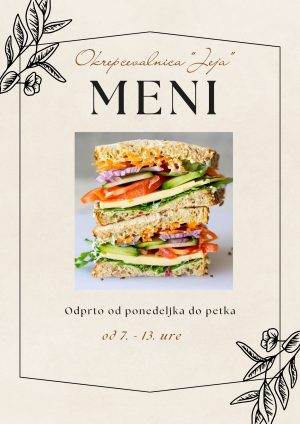 Šolska prehrana 1.1.2024 – 5.1.2024 1. MENI Topla malica 2. MENI Topla vegi malica 3. MENI Hladna mesna malica 4. MENI Hladna vegi... Nadaljuj z branjem