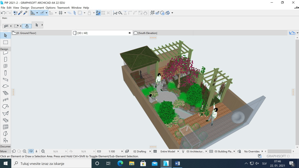 Pri laboratorijskih vajah je poudarek na načrtovanju in izbiri ustreznih rastlin za določene zelene površine (risanje načrtov).
